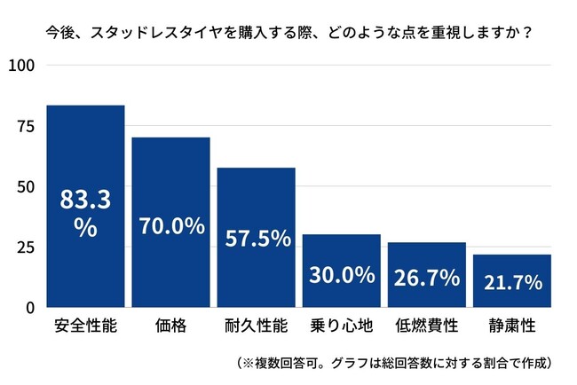 「今後、スタッドレスタイヤを購入する際に最も重視するポイント」を聞きました。