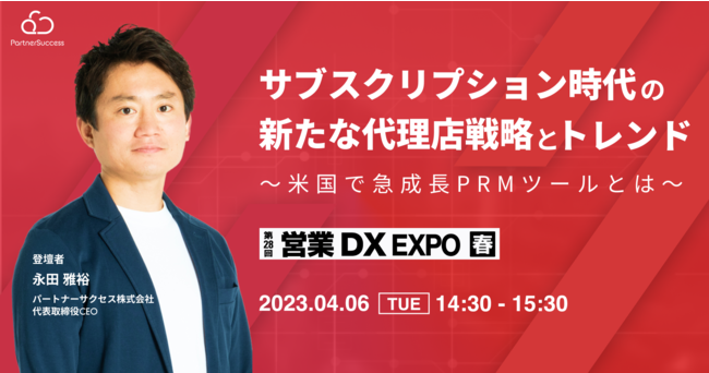 代理店販売で業績を伸ばすPRM(※1)-代理店連携管理クラウド「PartnerSuccess」を開発運営するパートナーサクセス株式会社(本社:東京都渋谷区、代表取締役 永田雅裕、以下「パートナーサクセス」)は、2023年4月5日(水)〜7日(金)に東京ビッグサイトで開催される日本最大級のIT展示会「Japan IT Week 春」内の「スタートアップセミナー」に登壇いたします。