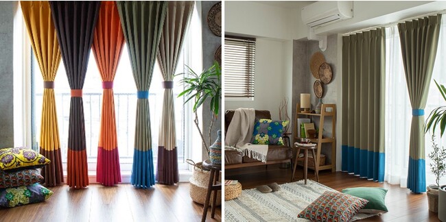 アフリカのカラーってなんて魅力的!色彩豊かなアフリカンカラー2色を繋ぎ合わせた唯一無二のカーテンです。