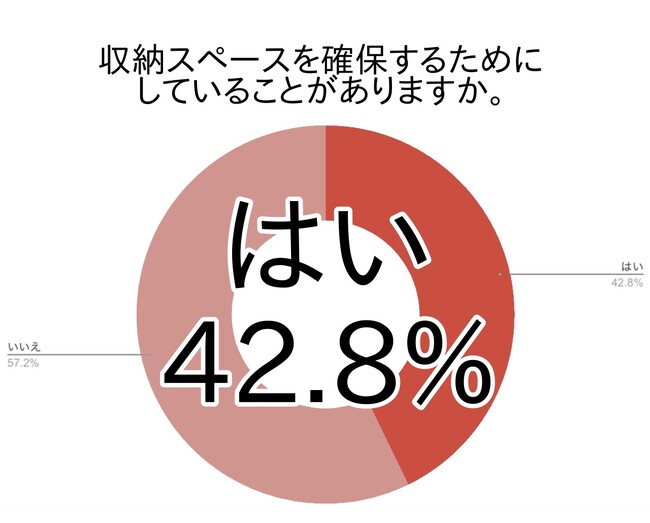 収納スペースを確保するためにしていることがあると答えた方は約4割(42.8%)でした。