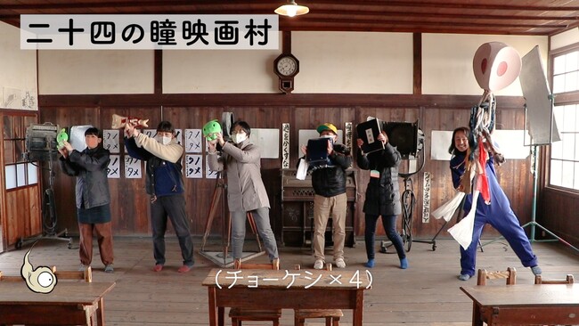 「チョーケシのうた」のプロモーションビデオは妖怪美術館のオリジナルバージョンの他に、小豆島の寒霞渓、二十四の瞳映画村ほか小豆島の観光地19箇所でチョーケシダンスを踊った「小豆島バージョン」があります。嫌なことを帳消しにしてくれる妖怪アート作品「チョーケシ」から生まれた「チョーケシのうた」に合わせ、小豆島の観光施設の皆さん、小豆島町、土庄町の職員の皆さん、有志の皆さん、延べ55名の方にご参加いただきました。このプロモーションビデオは2021年新型コロナウイルスの影響で、観光施設が臨時休業する中、いつか小豆島で皆さんとお会いできますようにと願いを込めて踊りました。