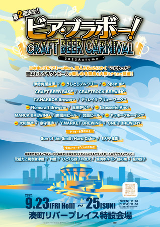 9月23日(金・祝) 〜25日(日)湊町リバープレイスにてクラフトビールの祭典が大好評につき、早くも第2回開催!「ビア・ブラボー!〜Craft Beer Carnival〜 2022 Autumn」