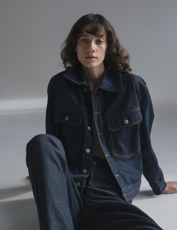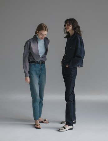 右:RB classic denim jacket(darkblue)¥13,500/RB classic denim(darkblue)¥13,500/Sofia loafer(jute)¥12,000