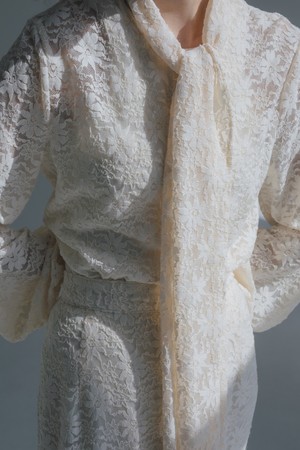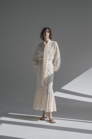 着用:Lace classic blouse(white)¥13,000/Mermaid lace skirt(white)¥13,000