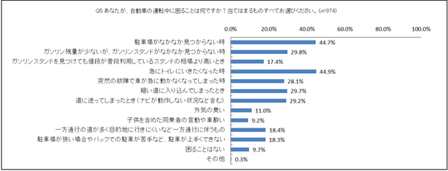 自動車の運転・管理に関するイライラや困りごとなどの実態を調査