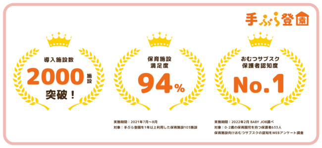 保護者は「紙おむつに名前を手書きして持参する」という手間が無くなり、保育士はおむつの個別管理の手間が無くなるという、保護者・保育士双方の課題を解決するサービスです。2019年7月にサービスを本格的に開始し、現在(2022年12月時点)は2,890施設以上で導入されています。2020年には、日本サブスクリプションビジネス大賞のグランプリを受賞しています。
