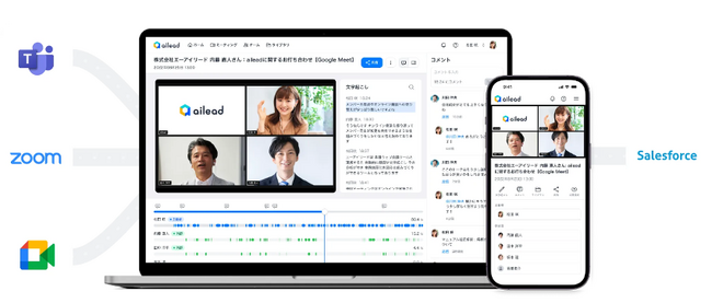 ailead は、AIが商談データを自動で収集・解析・可視化することで、営業現場の業務効率化と「売れる」営業人材の育成を実現します。お使いのWeb会議ツール(Zoom、GoogleMeet、Microsoft Teamsに対応)と連携することで既存の業務フローを全く変えずにご利用可能。AIによる文字起こし機能やSalesforce連携機能をご活用いただくことで、営業組織における議事録作成や社内共有等の内勤業務を減らします。様々な業界のセールスイネーブルメントに貢献します。