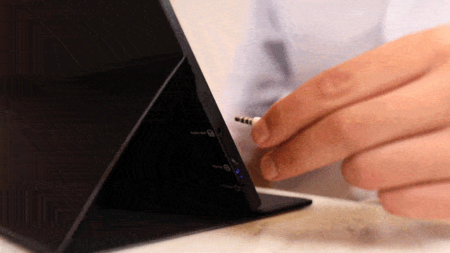 2つのスピーカーが内蔵され、映画や音楽、ゲームなどを楽しめます。イヤホンジャックも搭載、使用場所を問わず、喫茶店や図書館でもご利用いただけます。