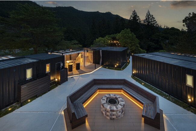 続く第2弾として、古くから熊野詣の宿場町としてにぎわった中辺路町近露に、「SEN.RETREAT CHIKATSUYU」を2022年4月28日、開業しました。コンセプトは「遊ぶ、微笑む、そしてつながる宿」。バーベキューができるプライベートガーデンや、焚き火を囲めるテラス、宿泊客自身で生地からこねて焼けるピザ窯などを備えています。非日常にワクワクしたり、気の置けない仲間や家族とゆったり過ごしてホッとしたり、リラックスできる空間となっています。また、コンテナ1棟を1つの客室としているため、外から直接部屋に出入りでき、密を避けられます。「熊野古道を訪れる観光客=トレッキング目的のみ」という現状を変えるべく、さまざまな観光目的の方に楽しんでいただける宿を目指します。