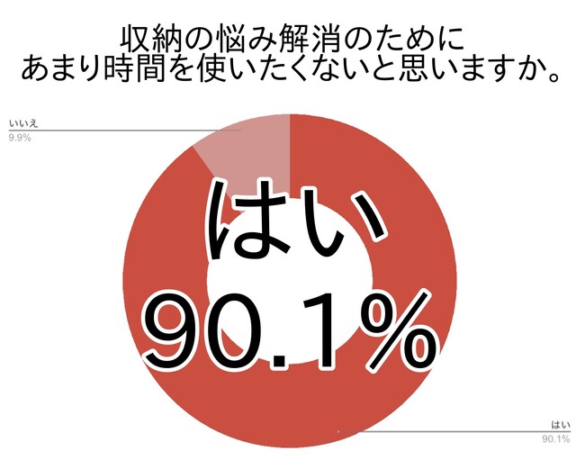 収納の悩みのためにあまり時間を使いたくないと思うと答えた方は全国で約9割(90.1%)でした。