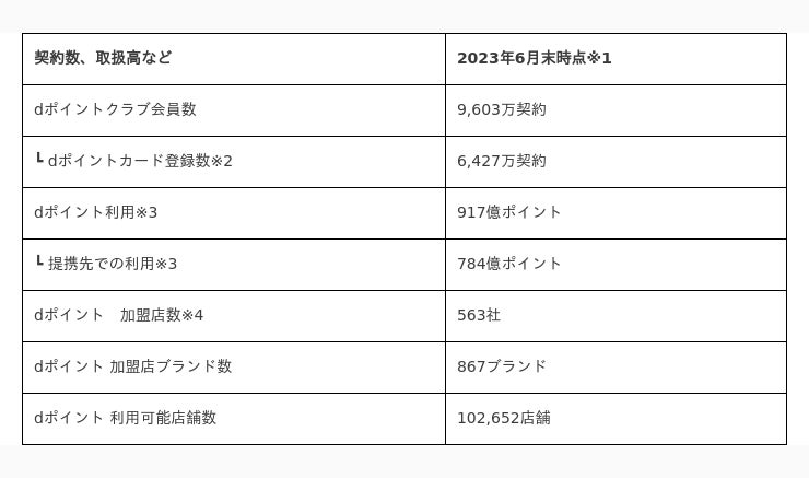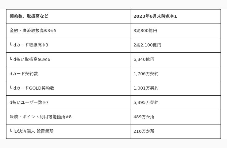 「dポイント」 「d払い」 「iD」 「dカード」 の事業データ