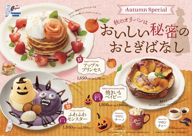秋のオリパンは「おいしい秘密のおとぎばなし」新作パンケーキ3商品、ドリンク2商品を期間限定販売開始いたします。