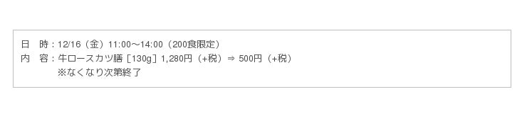 【1日限定】12/16(金)は、話題の牛カツが500円で食べられる行列必至のプレイベントも開催!