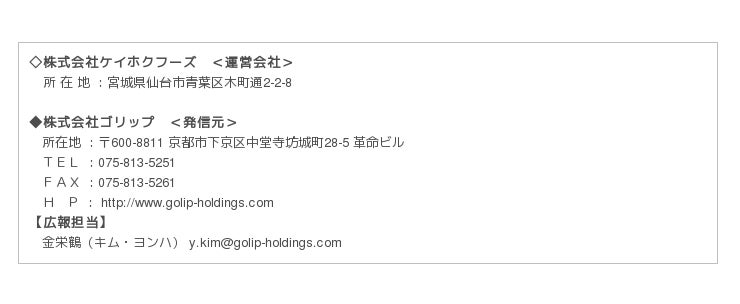 株式会社ゴリップ(京都本社:代表取締役 勝山昭)にフランチャイズ加盟する、株式会社ケイホクフーズ(本社:宮城/代表取締役:延川正英)は、2016年12月17日(土)に牛カツ専門店「京都勝牛 仙台一番町」をオープンします。【仙台初登場の新メニュー】が登場するほか、オープン前日の12/16(金)は、1日限定でシークレットイベントを開催!看板メニューである「牛ロースカツ膳」を500円(+税)で提供いたします。