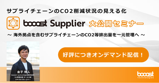 また、サプライチェーンにおけるCO2排出削減に関する取り組み動向、取り組みの実状や直面している課題などを解説と「booost Supplier」の機能を紹介する「『booost Supplier』大公開セミナー」のオンデマンドセミナーもスタートしました。