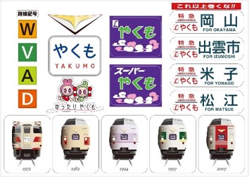 新旧の「やくも」を並べたデザインに、行先字幕を組み合わせました。字幕データは実際に製作に使用したものと同じです。