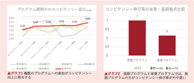 - 複数のプログラムへの参加がコンピテンシー向上に寄与する。(グラフ1)