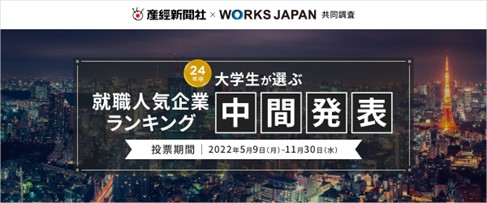 産経新聞社と就活対策サイトの≪キャンパスキャリア(運営:(株)ワークス・ジャパン)≫は共同で、24卒就活生を対象とした「就職人気企業ランキング調査」を実施しています。来年初頭の最終結果集計に先立って9月12日に中間結果を発表!