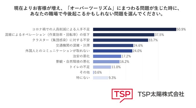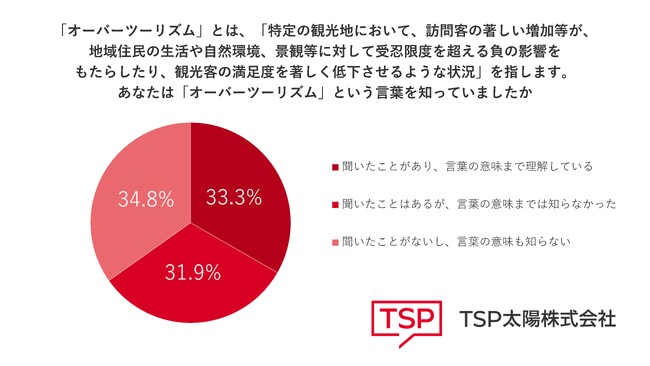 TSP太陽株式会社(本社:東京都目黒区、代表取締役社長 池澤 嘉悟、以下「TSP太陽」)は、観光業にかかわる517名に“オーバーツーリズム”に関するアンケートを実施しました。アンケートの結果から見えた観光業への影響とオーバーツーリズムにおける課題を説明します。