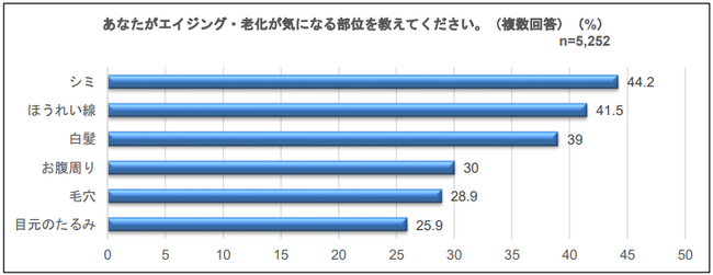 Qあなたがエイジング・老化が気になる部位を教えてください。(複数回答) n=5252