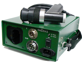 そんな一文機工が今最も力を入れている自社研究開発のヒット製品が、溶接の世界に革命をもたらした業界最軽量・最小の携帯できるピン溶接機「雷電II」です。