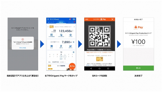 株式会社Origami(代表取締役社長:康井義貴、以下 Origami)は、株式会社クレディセゾン(本社:東京都豊島区 代表取締役社長:林野宏、以下クレディセゾン)との協業により、キャッシュレスを実現するスマホ決済サービス「Origami Pay」のQR決済テクノロジーを提供し、クレディセゾンが、セゾンカード・UCカード会員向けのスマホアプリ「セゾンPortal」「UC Portal」で利用できる決済サービス「セゾンOrigami Pay」「UC Origami Pay」を、2018年1月25日より、開始することを発表します。今回は、Origami Payをオープン化し、他社のアプリでスマホ決済を可能とする初の事例となります。このように、企業のニーズに応じて、アプリなどにOrigamiの技術を搭載することで、迅速かつスムーズにキャッシュレスを実現することができます。