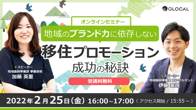 中小企業・中核企業や地方自治体を対象に経営コンサルティング事業を行う株式会社グローカル(東京都渋谷区、以下グローカル)は、地方自治体を対象に、移住を促進するWEBプロモーションのポイントを解説する無料オンラインセミナーを2022年2月25日16:00より開催します。