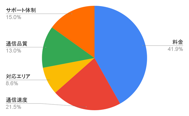 この結果から、携帯会社の満足度ランキングでは、料金面が大きな要因となっているとわかりました。