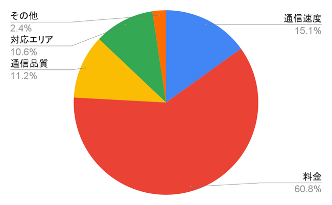 一方で「現在契約している携帯会社・キャリアに不満があれば教えてください」という問いでも、「料金」と回答した方が最も多く、全体の40%にのぼりました。