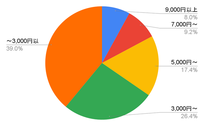 大手キャリアでは月々の携帯料金が抑えられない傾向にあるため、「〜3,000円以下」と答えた多くの人が、格安SIMを利用しているものだと考えられます。