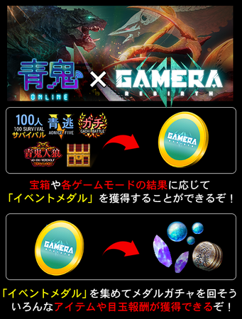 青鬼オンラインに、ガメラをはじめとしたアニメ『GAMERA -Rebirth-(ガメラ リバース)』のキャラクターが青鬼オンラインのコラボスキンとして登場!