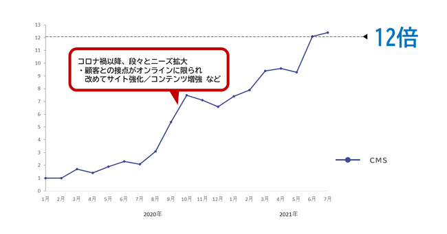 また、顧客との接点がオンラインに集約されていく中で、企業ホームページやそのコンテンツの拡大など強化が図られ、CMSツールの見直し・導入が進んだことが想像されます。