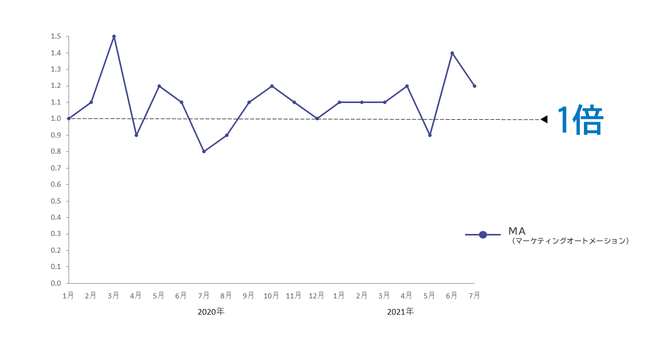 2020年1月の月間PV数を1.0とした場合の、「MA(マーケティングオートメーション)」カテゴリー月間PV数比率