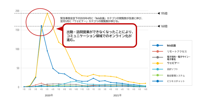 コロナ禍において、「Web会議」「ウェビナー」などコミュニケーション領域のオンライン化が急速に進行