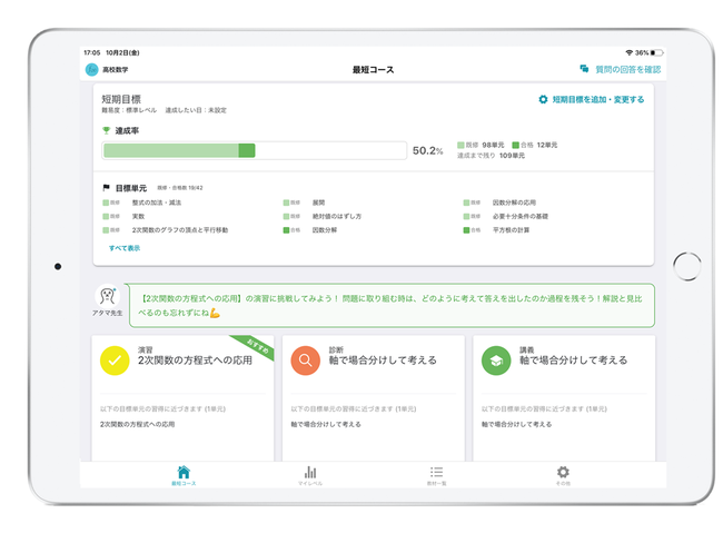 *所要時間は統計値であり、実際に要する時間は該当単元の習熟度により個人差があります。