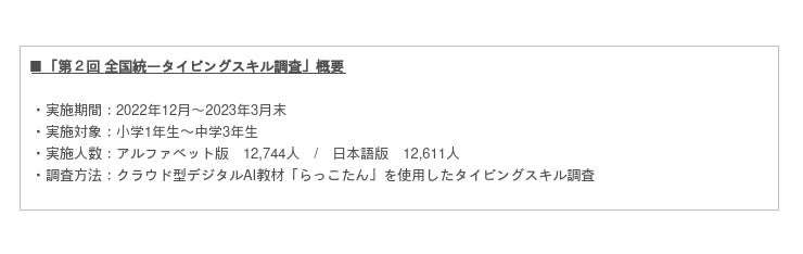 日本全国の小中学生がチャレンジ!「第2回 全国統一タイピングスキル調査」第2弾レポートを公開