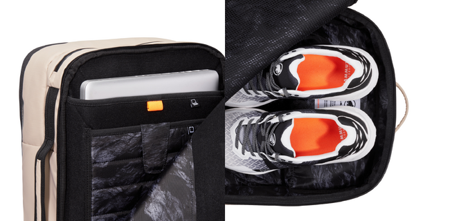 「Work」スペースは、ノートパソコンやタブレットや電源、書類などが入るスペースが完備されています。「Climb」スペースは、シューズや衣類を収納できるスペースがあり、ファスナーを閉めれば中の物が見えてしまう心配もありません。出張の際に、スーツケースを持たずにこれ一つで移動ができるのも人気のポイントです。