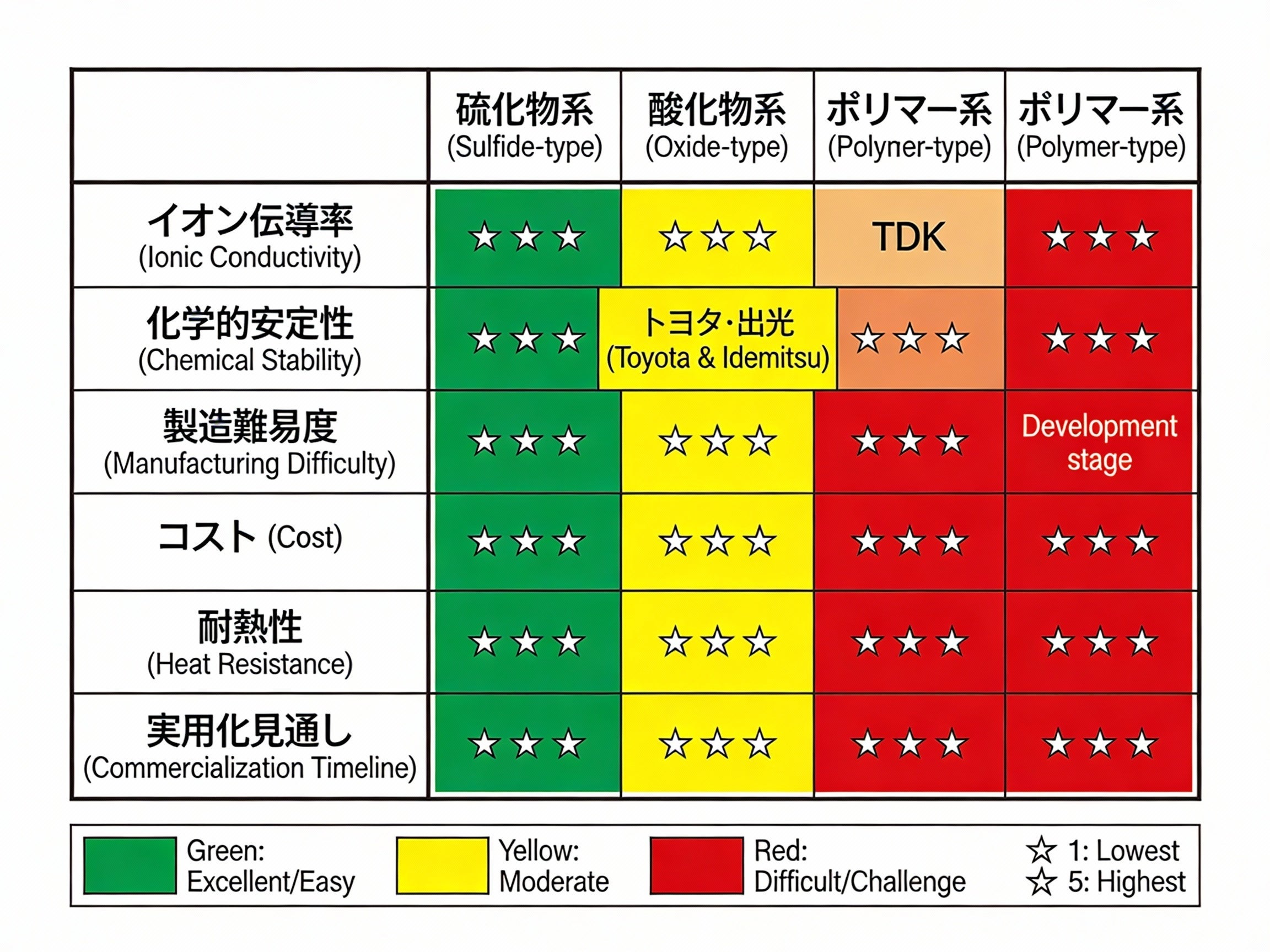 硫化物系・酸化物系・ポリマー系の材料別成長の差別化