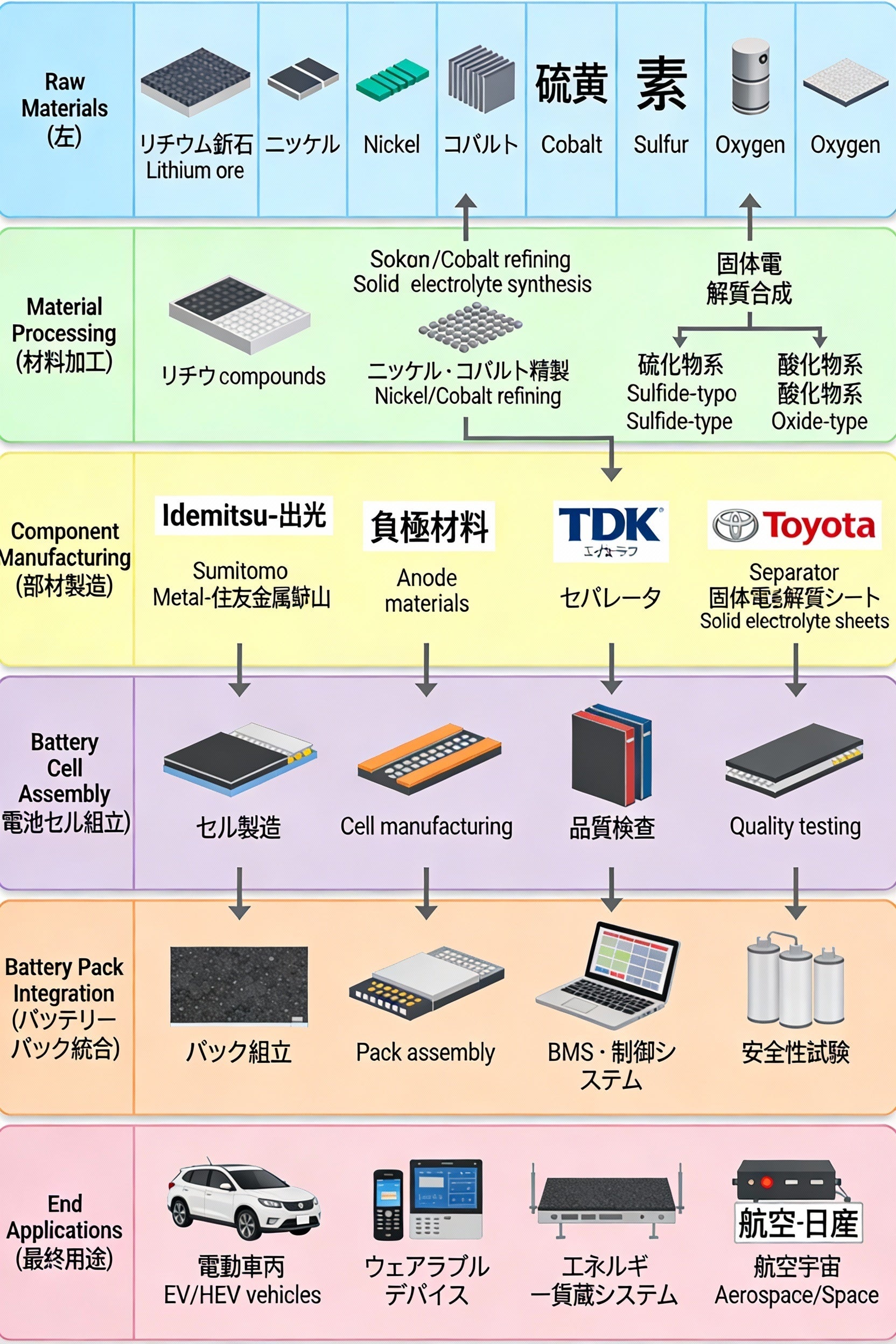 製造技術、電極・電解質材料の革新、品質管理・検査体系