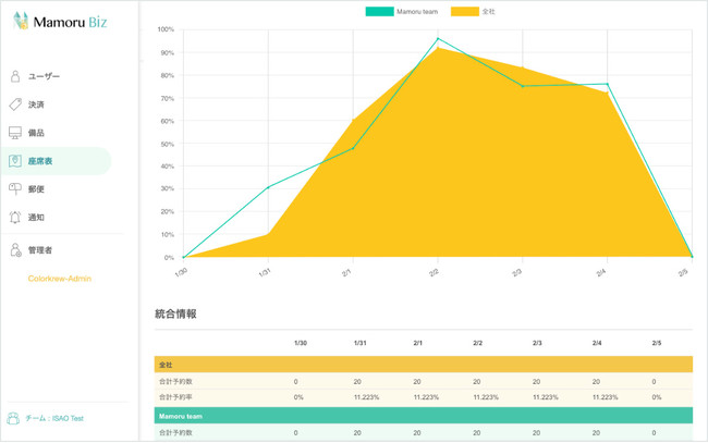 株式会社Colorkrew(本社:東京都台東区、代表取締役:中村圭志)が運営を行う、名もなき仕事(TM)を減らすビジネスコンシェルジュツール「Mamoru Biz(https://mamoru-secure.com/pay/)」は、全社、部署別、フロア別に出社率が分析できるダッシュボード(β版)をリリースしたことをお知らせいたします。