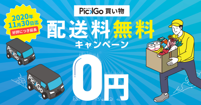 「PickGo 買い物」をより多くの方に体験いただきたいという思いから、期間限定で9月30日よりお届け先まで3km圏内であれば配送料が無料となるお得なキャンペーンを1か月間限定で実施しておりましたが、大変好評いただいておりますため11月30日まで期間を延長させて頂くことが決定いたしました。