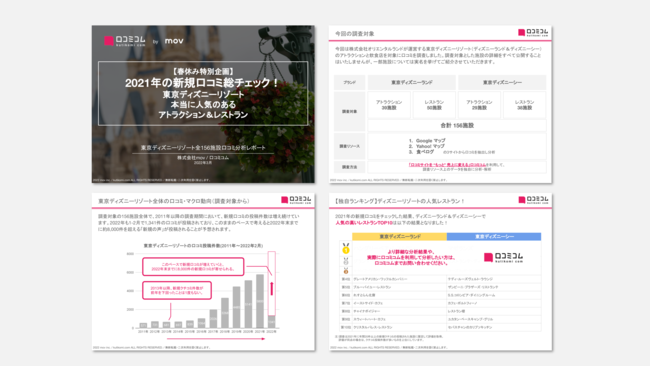 お客様の声のDXサービス「口コミコム」を運営する株式会社mov(代表取締役:渡邊 誠、本社:東京都渋谷区、以下mov)は、「口コミコム」独自の「分析機能」を用い、「東京ディズニーリゾート」の口コミ分析レポートを作成しました。