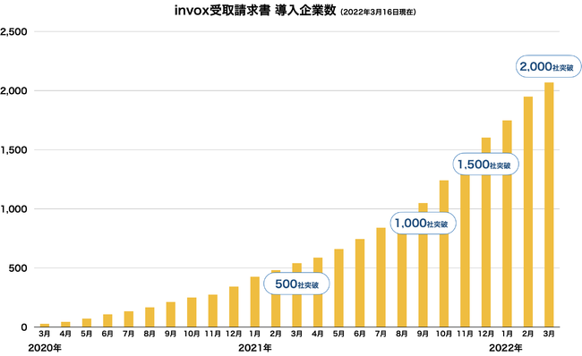 株式会社Deepwork(本社:東京都新宿区、代表取締役CEO:横井 朗)が提供する「invox受取請求書(https://invox.jp)」は、2022年3月18日にサービス提供開始から2周年を迎え、同3月に導入企業数が2,000社を超えたことを報告いたします。