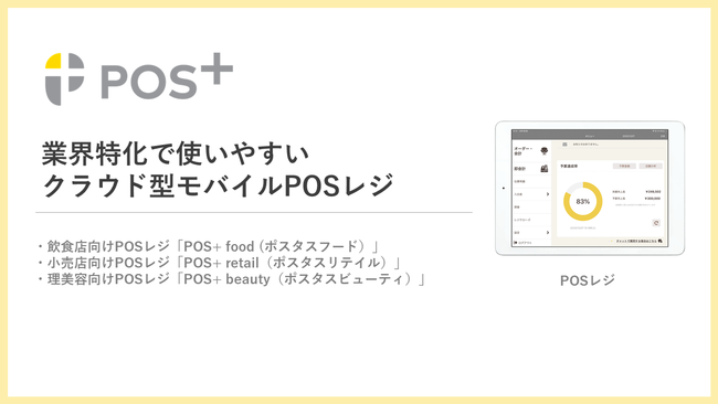 「POS+」は、店舗の売上向上や店舗運営担当者の業務負担軽減による生産性向上を実現し、また従業員にとって利便性の高い機能を搭載する店舗向けソリューションです。飲食店向け「POS+ food」や小売業向け「POS+ retail」、理美容向け「POS+ beauty」のクラウド型モバイルPOSをはじめ、顧客の属性に合わせたマーケティング活動を可能にするデジタル会員証「POS+ connect」や、従業員の勤怠管理「POS+ time recorder」などきめ細やかな機能を搭載し、効率的な店舗運営を支援いたします。