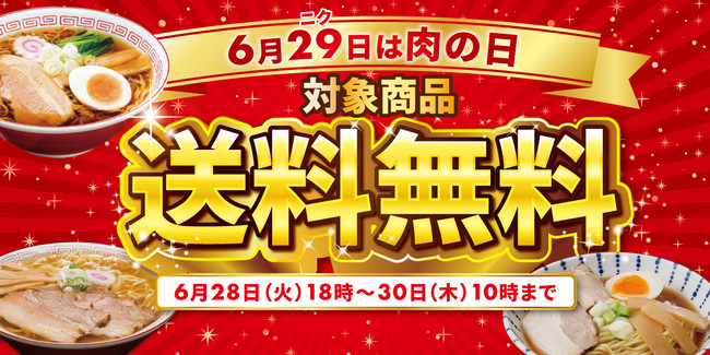 《6月29日は“肉(ニク)”の日》「チャーシュー付き対象商品 送料無料キャンペーン」