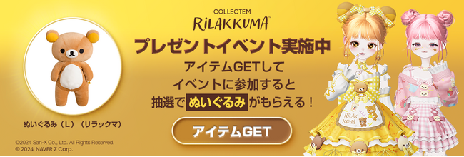 NAVER Z Corporation(本社:韓国、共同代表:キム・デウク、キム・チャンウク、以下NAVER Z)は、2月27日よりガチャ仕様でアイテムを購入できる新コンテンツ『COLLECTEM(コレクタム)』をローンチしたことをお知らせします。また、第一弾としてサンエックス株式会社(本社:東京都千代田区 代表取締役社長:千田 洋史)が展開する「リラックマ」とコラボレーションした限定アイテム38種をリリースします。今後もさまざまなIPやブランドと限定アイテムやコレクティブルなグッズを展開し、ユーザーのエンタメ体験を促進してまいります。