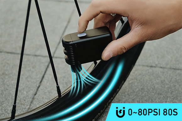 2.パワフルな性能を持ち、わずか80秒で1本のタイヤ(0~80PSI)を充填できます。