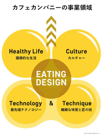 カフェ・カンパニーは、食×エンターテインメント、食×カルチャー、食×ヘルシーライフを「食べる」という行為の中で身近に楽しく提供していく取り組みとして、世界中のテクノロジーと日本の匠の技を未来に継承し、新しい価値に変えていくための事業を展開しています。