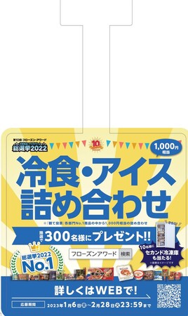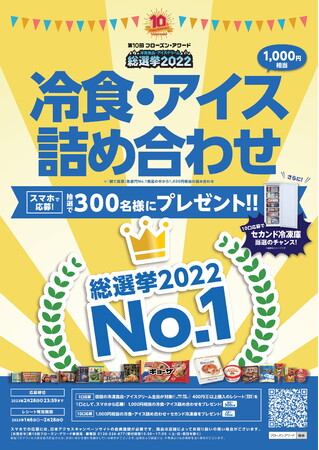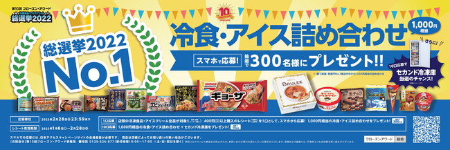 2023年1月からは Web 投票の順位を活用した、総選挙の各部門 No.1商品詰め合わせセット1,000 円相当分が、抽選で 300 名様に当たる消費者キャンペーンを実施します。さらに、全国の小売業様にて店頭販促プロモーションを連動して展開し、フローズン売場全体の活性化を図ってまいります。