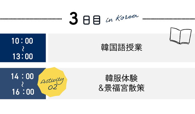 国の史跡に指定されている景福宮で韓服をまとったり、人気のロッテワールドで自由時間を過ごしたり、現地の韓国人がよく行くホットなインスタ映えエリアを巡ったりなど、学びと遊びの良いところどりをしたアクティビティが充実しております!
